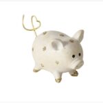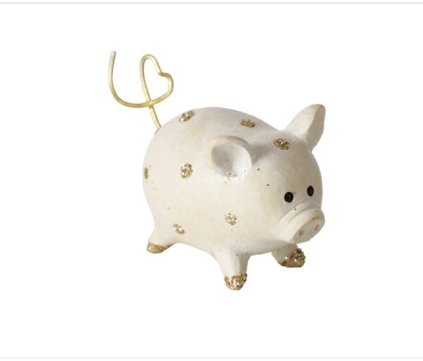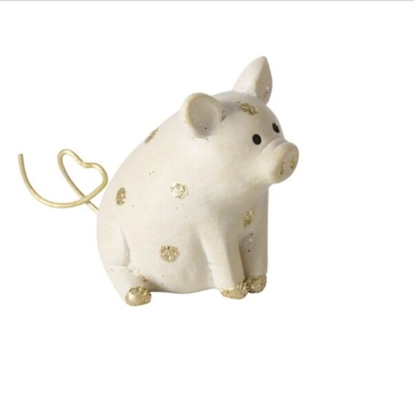 Dit schattige geluksvarken is crème-wit met gouden stipjes en een gouden hartjes-staartje.