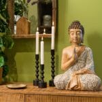 Trend 2024: Metalen kaarsenhouder M zwart met bolletjes 27cm hoog