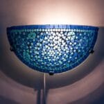 Luna Oriëntaalse wandlamp van mozaïek. 30cm breed, 17cm hoog. CE markering. Wij leveren ook veel soorten oosterse lampen en filigrain lampen.